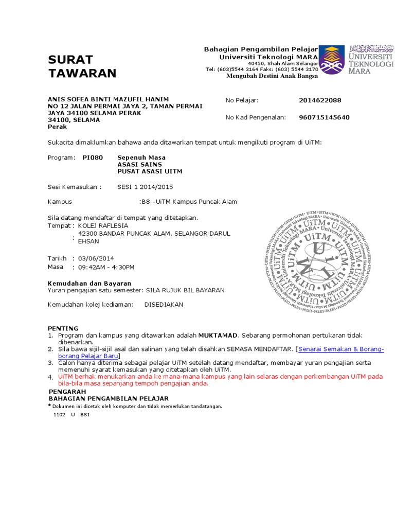 No Rujukan Surat Tawaran Uitm Mariodsxz